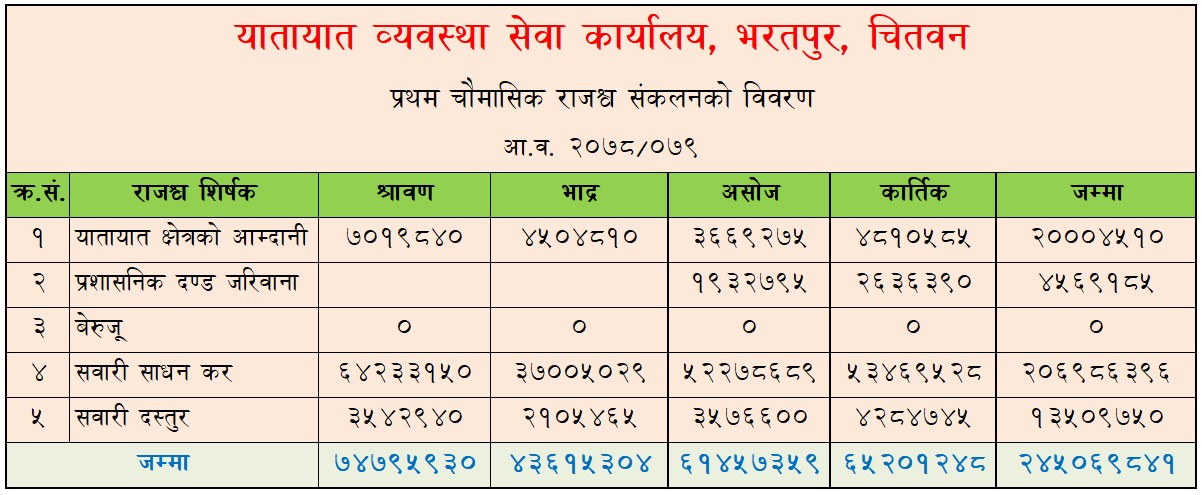 प्रथम चौमासिक राजश्व संकलनको विवरण 078.079