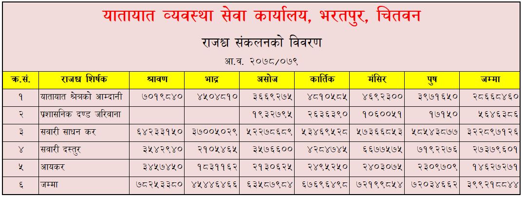 २०७८ पुषमसान्त सम्मको राजश्व संकलनको विवरण- २०७८/०८९